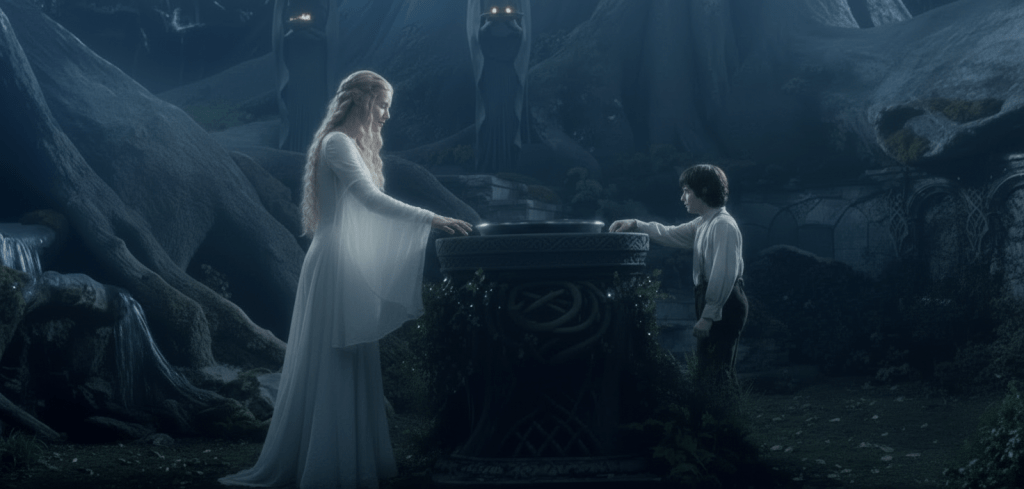En el simbólico universo de Tolkien, es absolutamente injusto que Frodo tenga que llevar el Anillo al Monte del Destino. No obstante, Galadriel le enseña en el espejo aquello que pasará si renuncia a ser consecuente con aquello que se le ha dado.